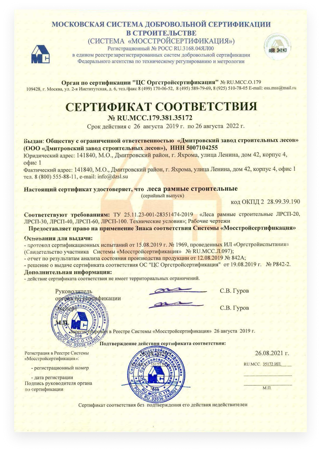 Оборудование сертифицировано по ТУ